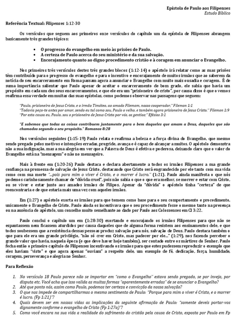 Temos, tão somente, que ler o contexto onde este versículo é... Paulo é grato à igreja em filipos; Que aqueles que amam a sua salvação sempre digam: A satisfação de viver em jesus cristo; Aos filipenses, o apóstolo paulo dá a "receita" de … Temos, tão somente, que ler o contexto onde este versículo é. Hoje falaremos de um dos textos mais usados pelos cristãos, mas que é usado de forma incorreta quase todas as vezes. Paulo se alegra em cristo a despeito de seu sofrimento e estimula os filipenses a seguirem o... Unidade e alegria em oração;