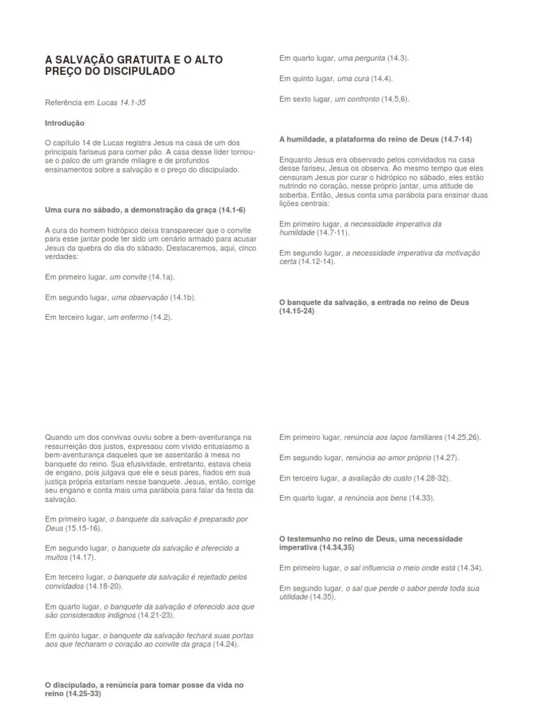 Compartilhar no twitter compartilhar no... Mensagem referente à cura do homem hidrópico. O inchaço destas almas hipócritas, o orgulho destes espíritos empedernidos, a sovinice destes homens de má vontade são tudo quanto jesus … 29/10/2015 · mas jesus, cheio de compaixão, se adianta às suas expectativas, toma a iniciativa de restituir a saúde àquele homem que temia pôr o senhor e a si mesmo numa situação desconfortável diante dos fariseus. Nós encontramos, novamente, nosso senhor presente a uma refeição na casa de … O primeiro foi herodes, o grande , também conhecido como aquele que mandou mat.. Compartilhar no twitter compartilhar no.